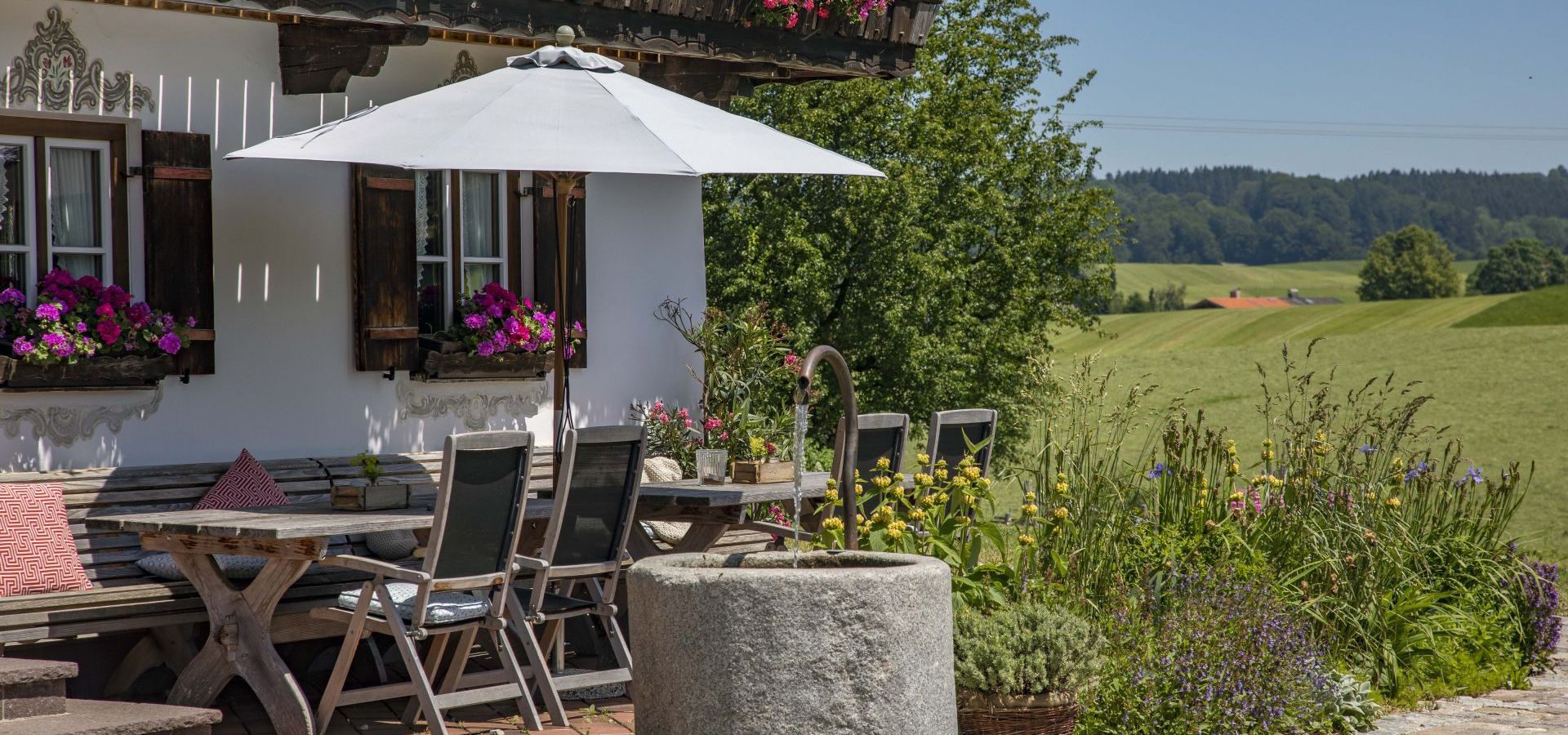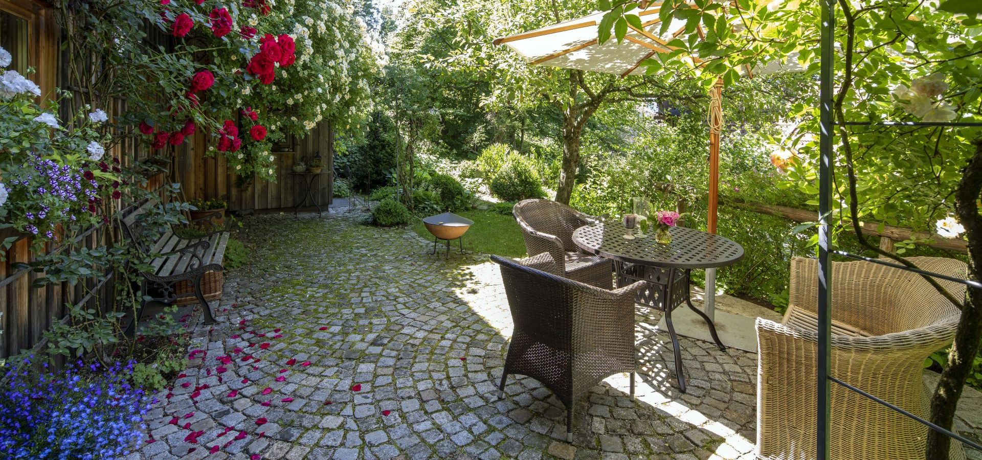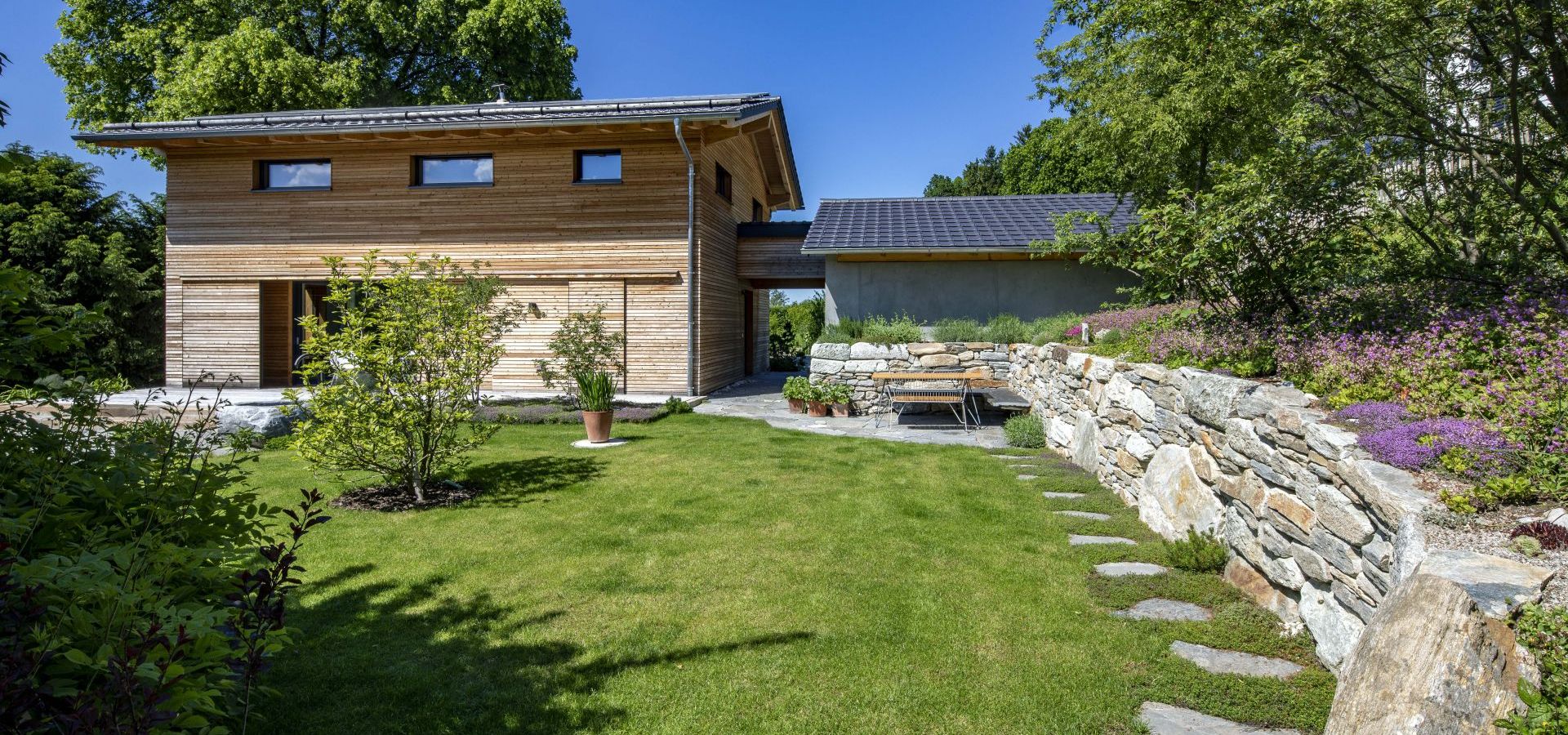 - Anlegen von naturnahen Gärten mit umweltschonenden Materialien (torffreies Gärtnern, organische Dünger, antike/gebrauchte Natursteinmaterialien mit kurzen Transportwegen, insektenfreundliche Pflanzungen)